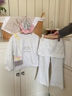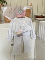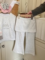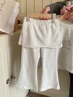 スカート付フレアパンツ×イラストトレーナー セットアップ